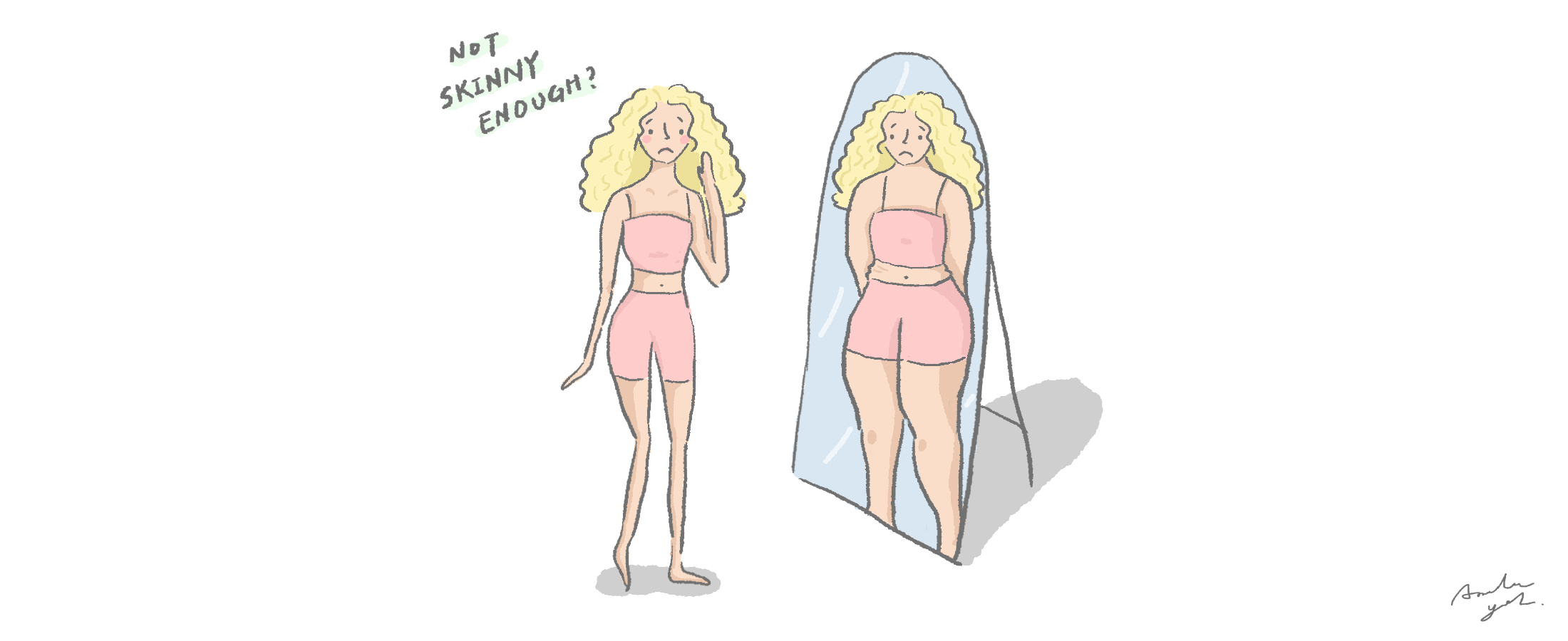 早在20世紀初當人們意識到肥胖的危害後,瘦便開始擔負起「健康」的社會責任,也導致社會開始推崇「瘦即是美」的價值觀。於是漸漸地對女性而言,瘦代表的已經不僅僅是健康,而是更好的自己、以及自律的象徵。因此每個女孩或多或少都會有這樣的期望:「自己再瘦一點會更好」。