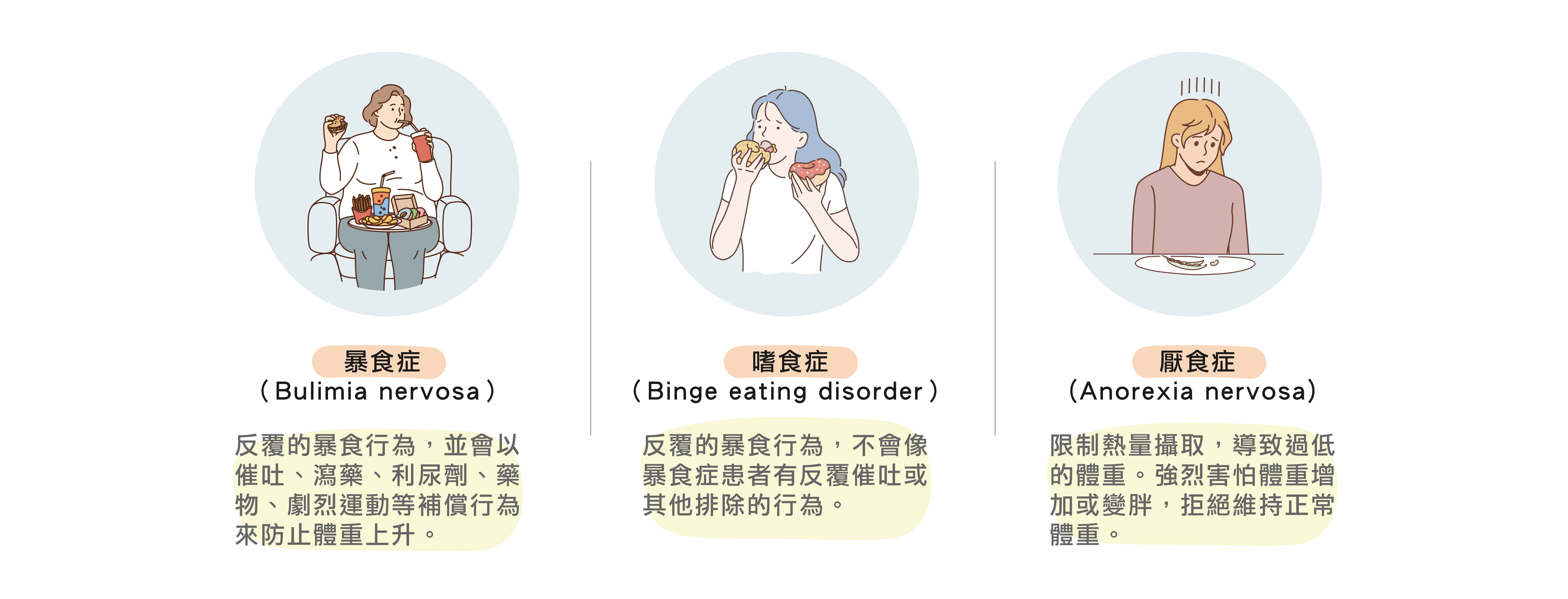 爆食伴隨 — 速度快、難受才停、不餓也吃、困窘而獨立進食、事後負向情緒。