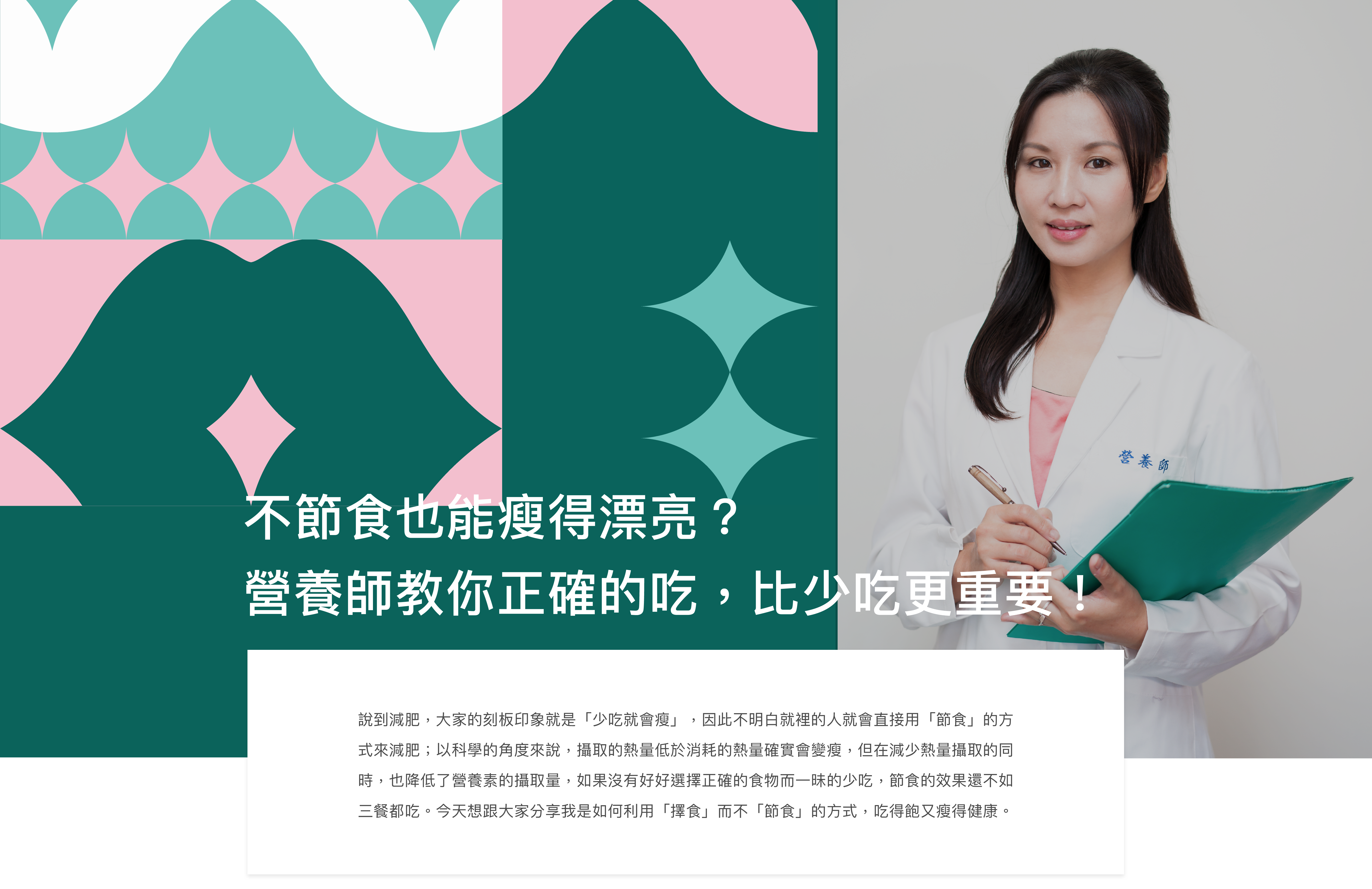 首先,你一定要了解營養素的重要性;人體代謝需要醣類、蛋白質、脂肪、水分、維生素、礦物質等營養素,缺乏某一項營養素身體機能就會受影響,代謝異常會演變成「吃得再少體重也不會下降」,甚至出現後遺症,例如賀爾蒙失調、經期不正常等不良影響,且節食減重法的復胖率極高,不但失掉健康還瘦不了,真是得不償失。