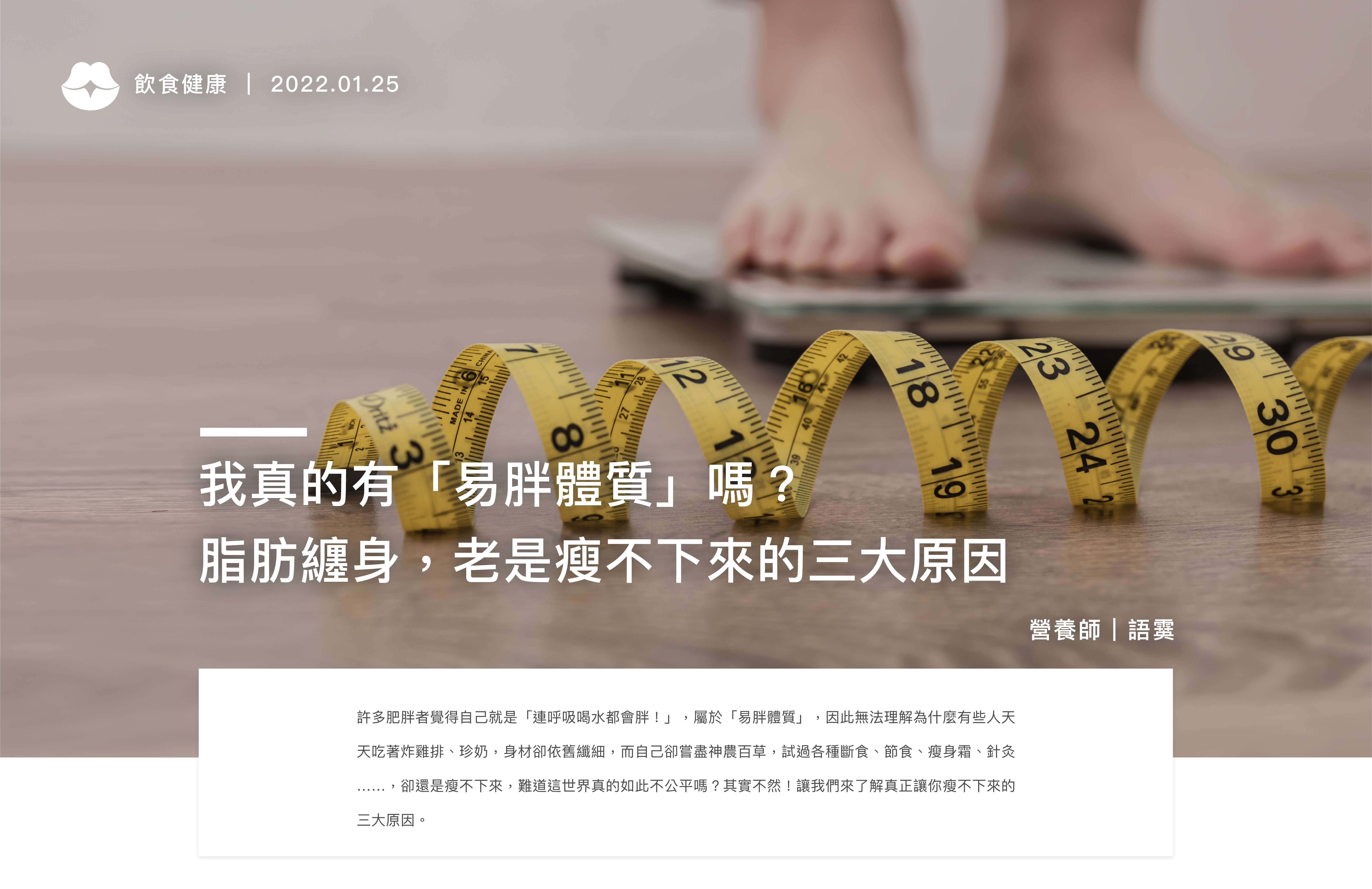 「為什麼我就是瘦不下來!」、「我連呼吸喝水都會胖!」、「我是易胖體質,稍微一多吃就把減掉的體重胖回來了。」…