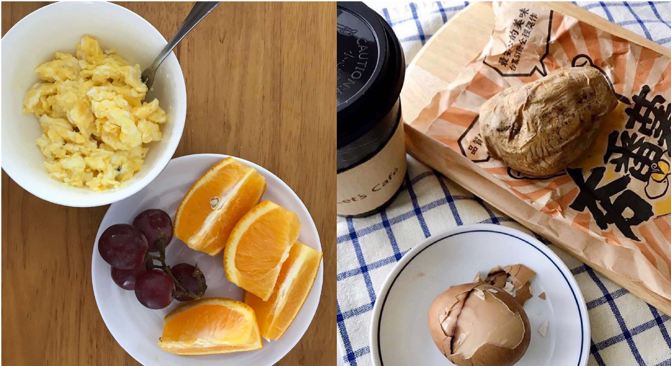 例如 茶葉蛋+豆漿、溏心蛋+蘇打餅乾、茶葉蛋+芭樂/蘋果/香蕉