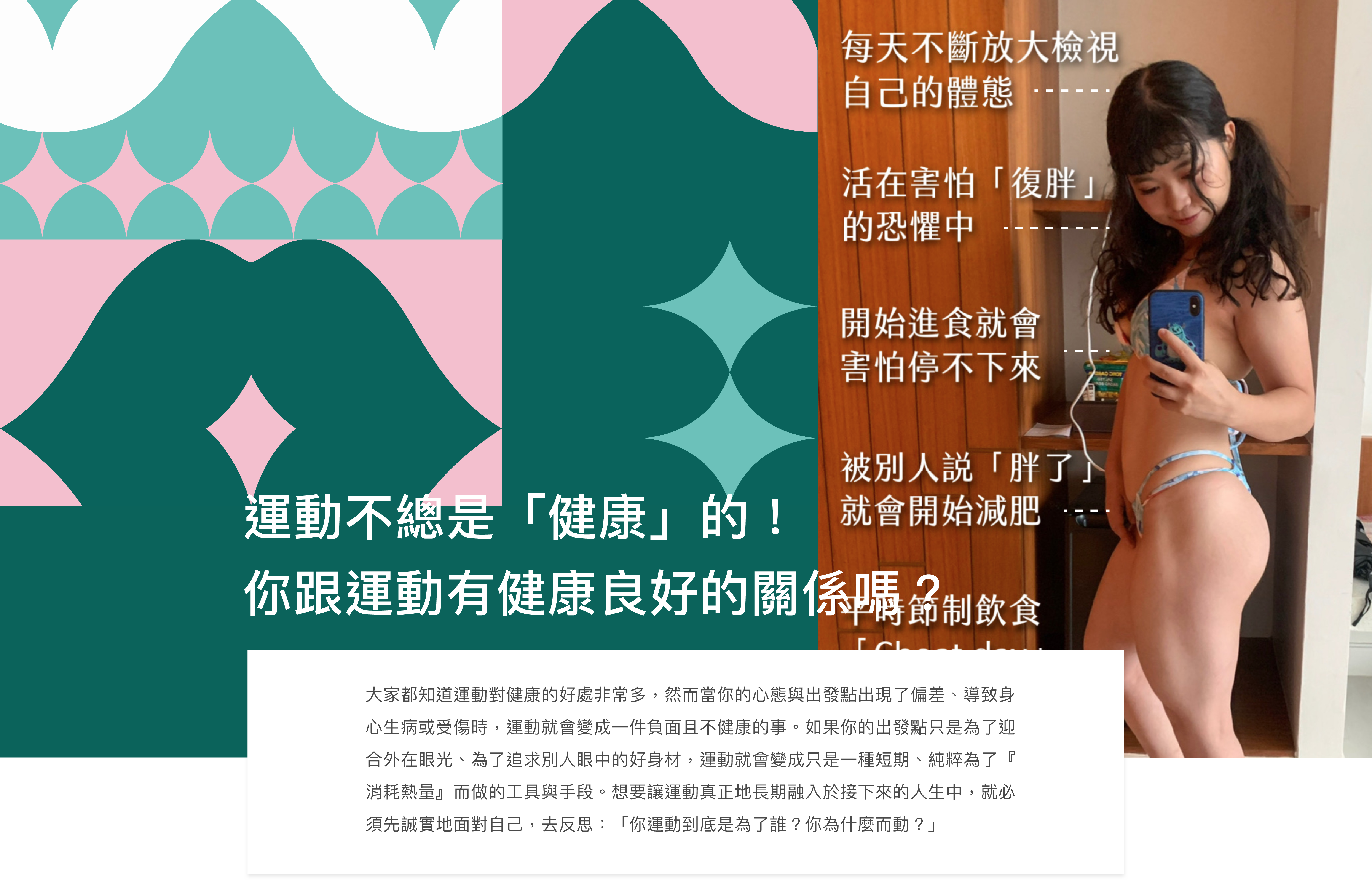 相信很多人都會有的共同經驗就是,當別人知道你有在運動/健身的時候,可能會問:「你有在運動怎麼都沒變瘦?」「怎麼運動看起來沒有成效?」接著你可能就會開始自我懷疑與否定,完全忽略運動帶給你其他的正面感受和好處,然後漸漸地運動變成了一種,為了符合他人眼光與評論而做的壓力⋯。