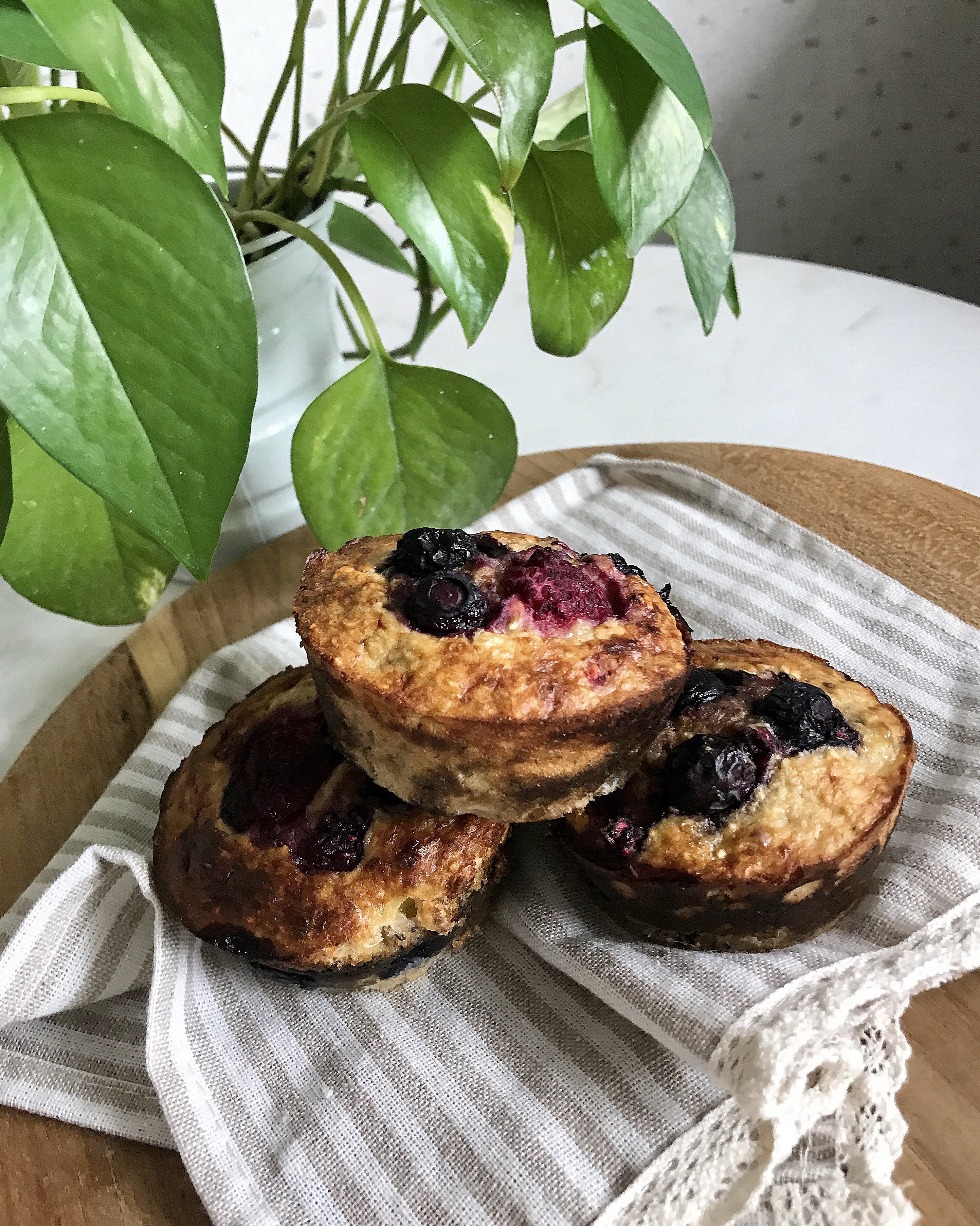 Ingredients: 2 ripe banana, oatmeal around 30g, 1/2 cup of milk/or plant-based milk(30ml), 1 egg, baking powder 5g, a handful of frozen berries, 1 spoon of protein powder (15-20g)