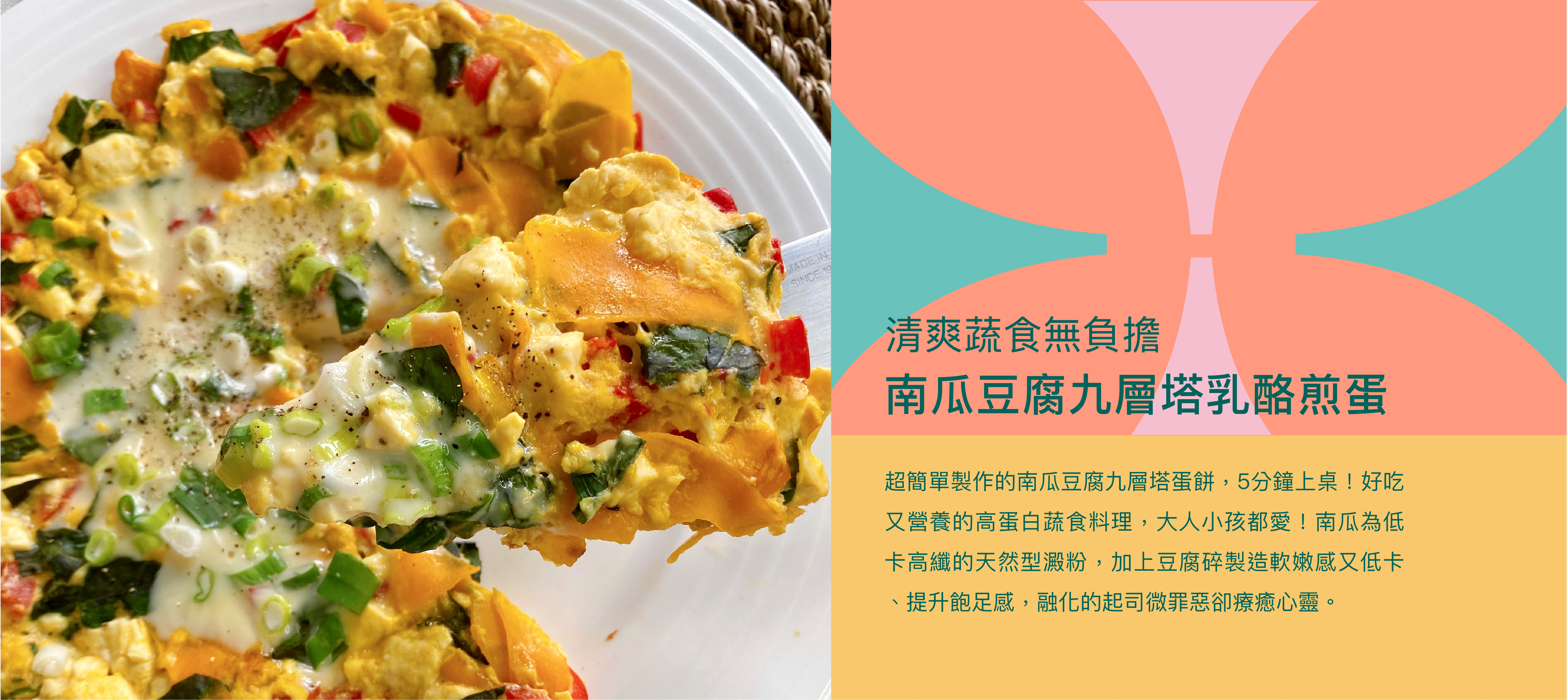 A super easy recipe for pumpkin and tofu omelette with basil, done in 5 minutes! It is a yummy and nutritious high protein vegetarian dish, both adults and kids will love it! Pumpkin is a low carb superfood with high fibers, and the minced tofu creates a smooth texture. This dish contains low calories but will make you feel full. The melted cheese may be a little bit “sinful” but it can be quite therapeutic.