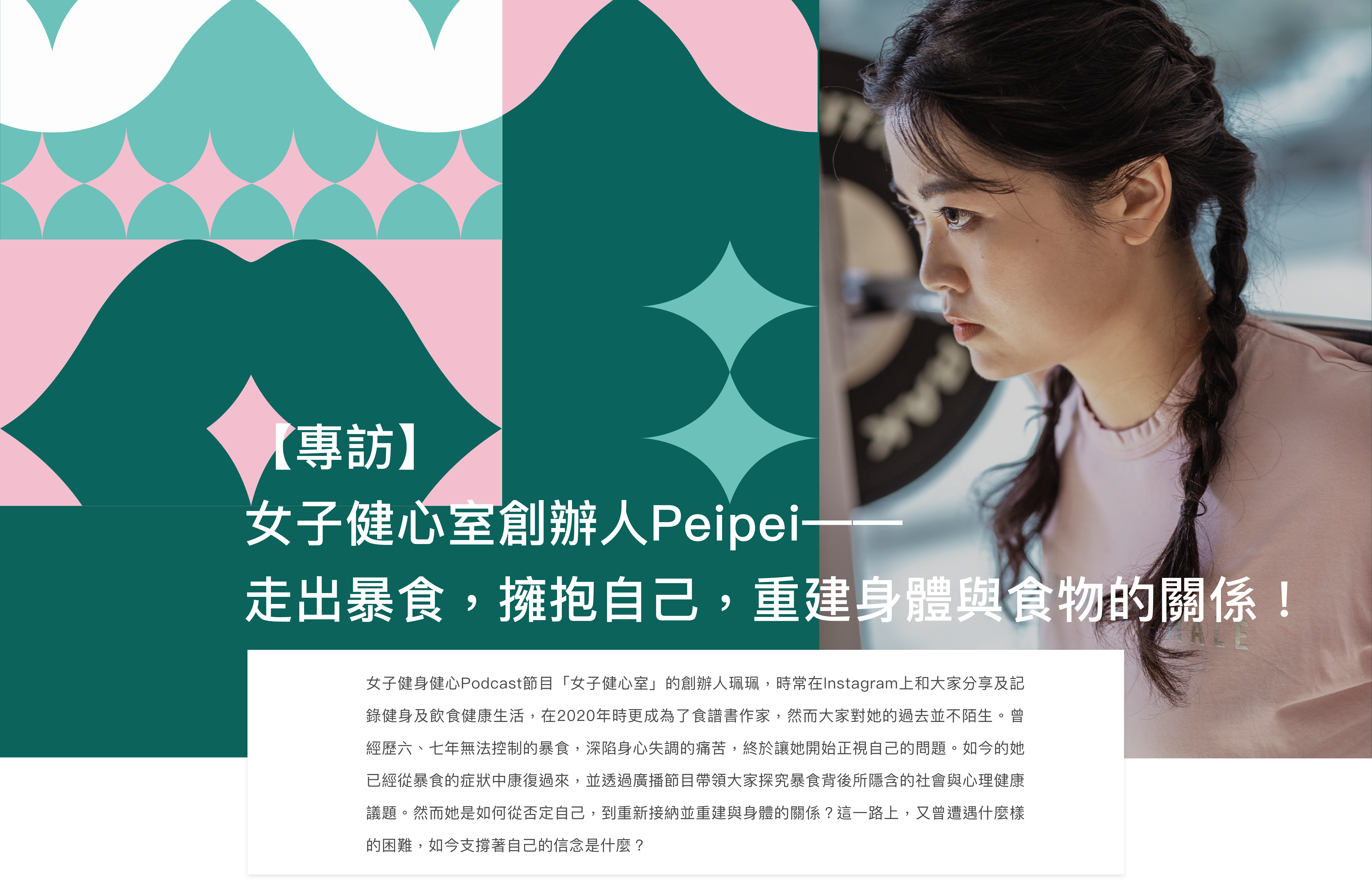 我覺得其實在經營「女子健心室」之餘,一方面也是在幫助我自己。我聽了很多相關的人,尤其是同樣經歷過飲食失調的人,以及他們如何走出來的一些經歷。然後我也去分享我自己的經驗,還有閱讀很多的研究或是書籍,去歸納出一些方法,把它整理起來。那時候我會有一個自我懷疑的聲音覺得,「我還沒有好,那我可以分享那些嗎?」可是,我覺得我就像是一個跟大家在同一條路上在成長的角色。我只是把我的過程分享出來、記錄下來。