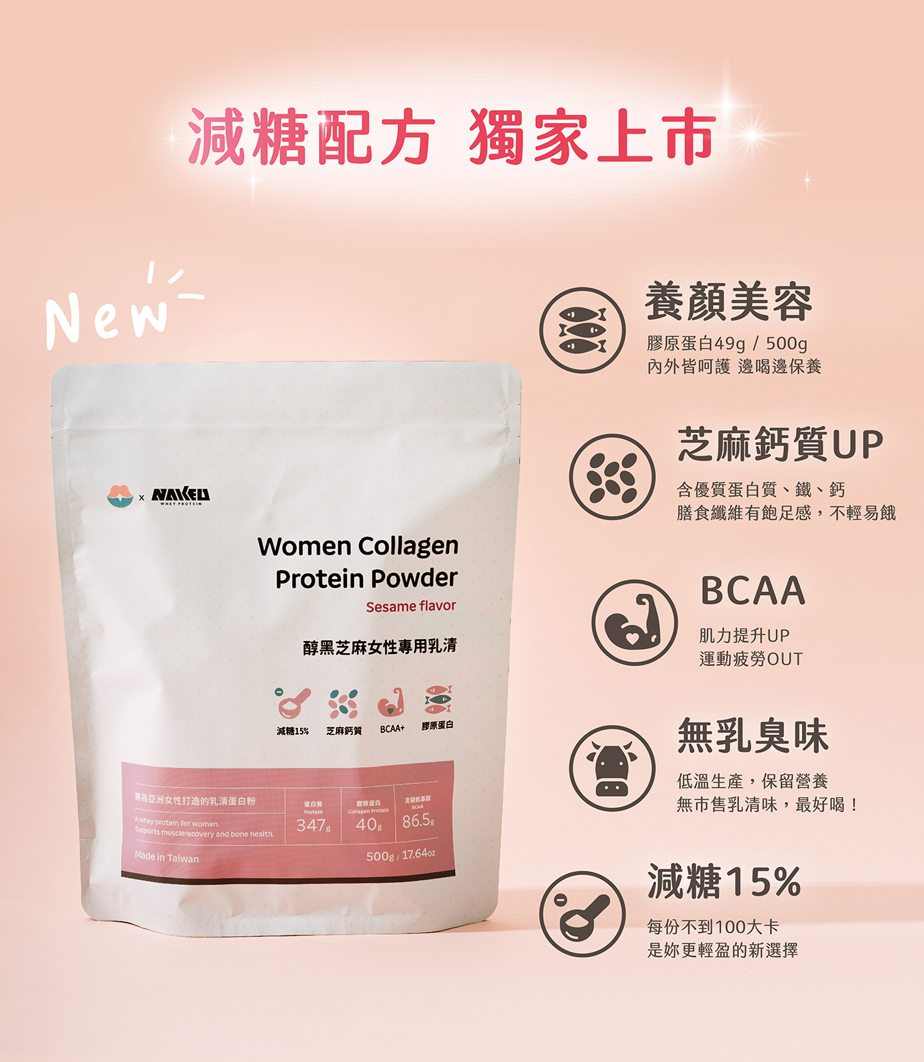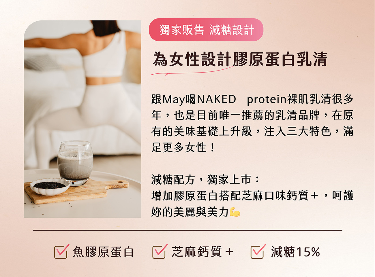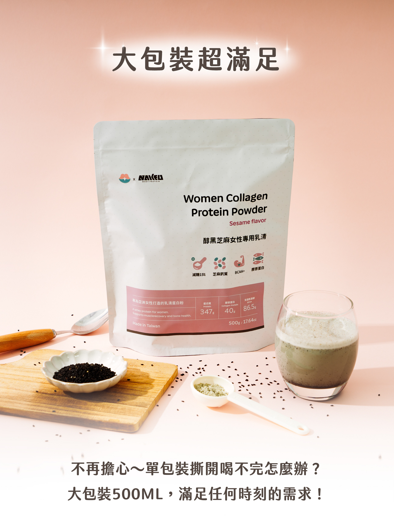 增加膠原蛋白搭配芝麻口味鈣質+,呵護妳的美麗與美力💪